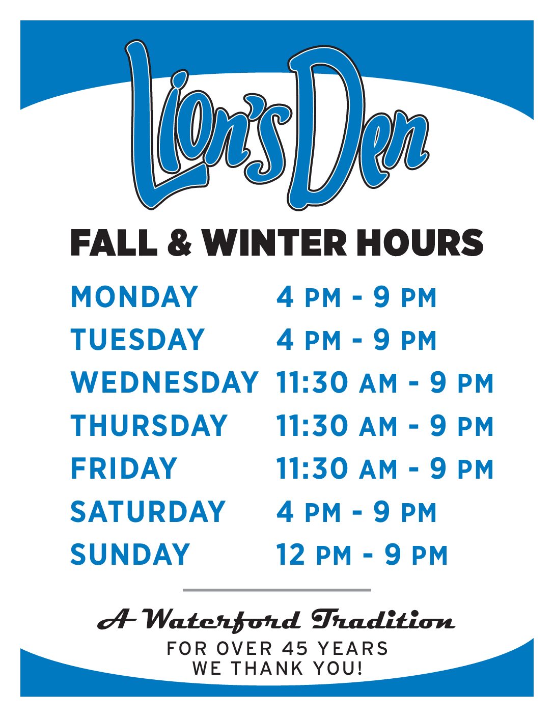 The Lion’s Den is renowned for its extensive menu of over 120 options- impressive portions of top-notch food & stiff drinks, at a price you'll like. In addition, we now offer our guests the famous Alibi Pizza, which was voted #1 by Detroit Monthly Magazine.